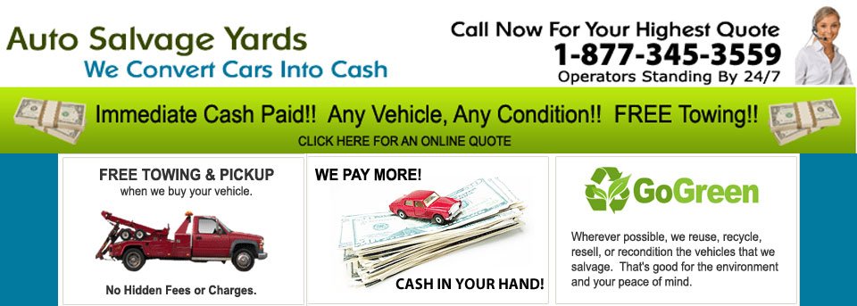 Once your car gets to the auto salvage yard, your buyer can opt to do many different things with it. Some cars are gutted and scavenged for parts. Others are actually rehabilitated and either resold or donated to organizations. Still others are demolished entirely (or in part), and the metal may be sold off as scrap metal. In any event, getting a useless or malfunctioning vehicle off the road and into an auto salvage yard not only helps your pocketbook a bit, but also helps to recycle working components and return them to the economy.
